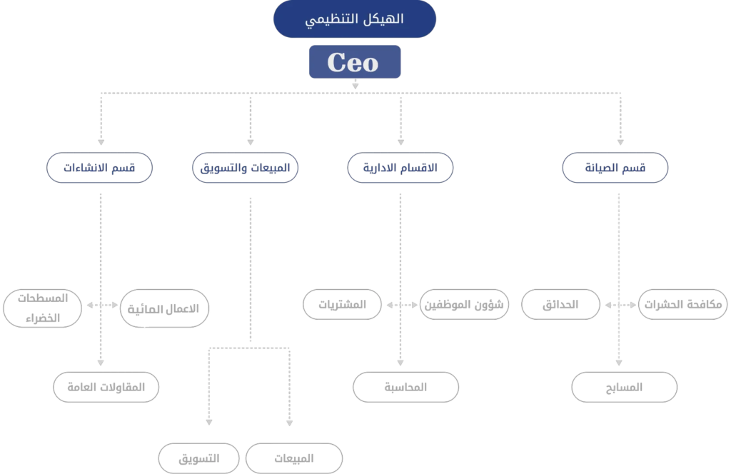 يعكس هيكلنا التنظيمي رسالة شركتنا وقيمها واستراتيجيتها للنمو. سواء كنت جزءًا من قسم المبيعات أو العمليات أو المالية أو التسويق أو الموارد البشرية أو أي قسم رئيسي آخر، فإن هذا المخطط يُعد دليلك للتنقل داخل منظومتنا التعاونية.